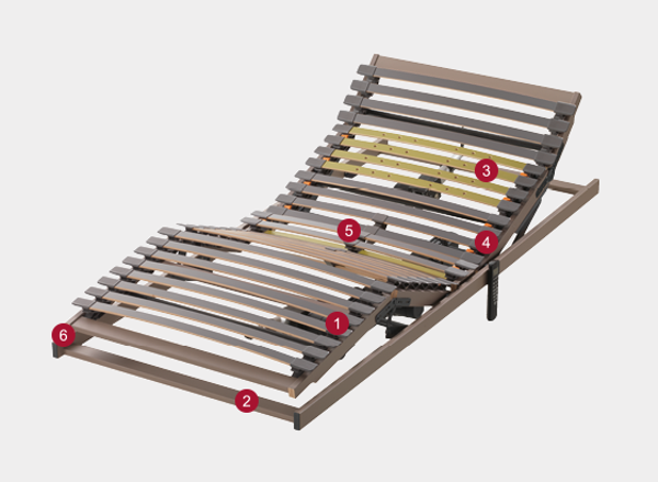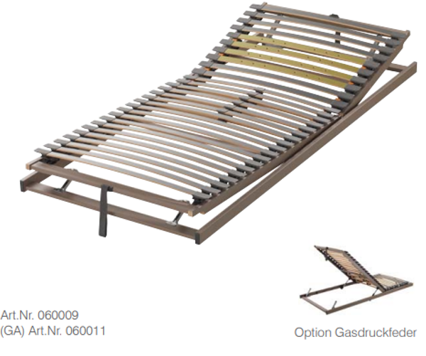 Lattenrost mit Kopf - und Fußhochstellung und Gasdruckfeder für Bettzeugraumzugang