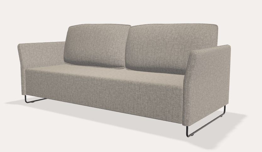 Die Doppelliege Lino macht durch seine schmalen, leicht nach außen gebogenen Armlehnen mit eleganten Metallkufen in Mattchrom schwarz sowohl im Jugend- als auch im Wohn- oder Gästezimmer eine schlanke Figur. Kaum zu glauben, dass da auch noch ein Doppelbett versteckt ist!