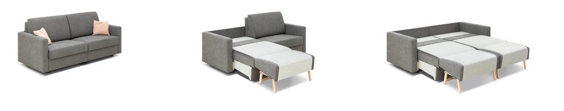Die Besonderheit: Bei dieser Schlafsofavariante kann je nach Bedarf der linke und der rechte Teil unabhängig voneinander zu einem Einzelbett ausgezogen werden. Wenn Sie doch ein Doppelbett brauchen, ziehen Sie einfach beide Teile heraus.