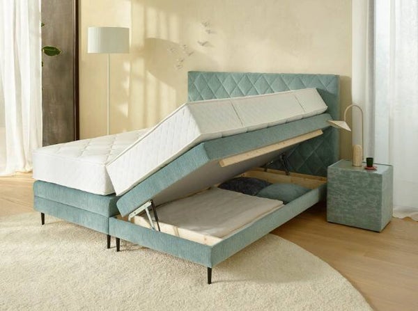 Das kolossale Boxspringbett »Collina« mit Stauraum und edler Rautensteppung des Kopfhauptes ist ein echter Hingucker. »Collina« vereint Boxspring-Liegekomfort für höchste Ansprüche mit dem extra Plus an ordentlich viel Stauraum zum Aufbewahren von Bettwäsche, Decken, Kissen und Co.