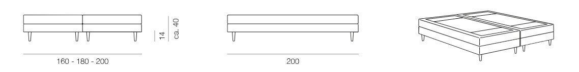 2 x 80 / 200 / Stoffgruppe 80 / 961/01 glatt bezogen / Metall - Kegelfuß schwarz - matt - € 3.072,00